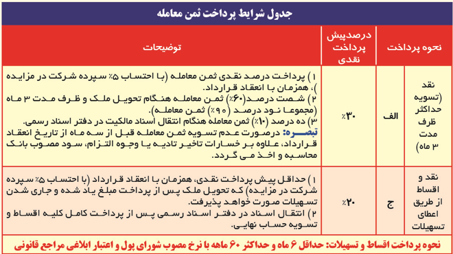 بانک شهر در اجرای قانون رفع موانع تولید رقابت پذیر و سیاست های ابلاغی بانک مرکزی در نظر دارد تا تعدادی از املاک مازاد بر نیاز خود را طبق جدول و بشرح نشانی های ذیل با وضع و شرایط موجود و برگه شرایط خاص در مزایده عمومی از تاریخ 1404/09/09 لغایت 1404/09/17 با شرایط زیر به فروش رساند.